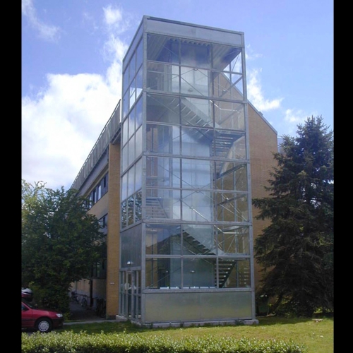 Komplet trappetårn med invendig 1/2 svingstrappe over flere etager.