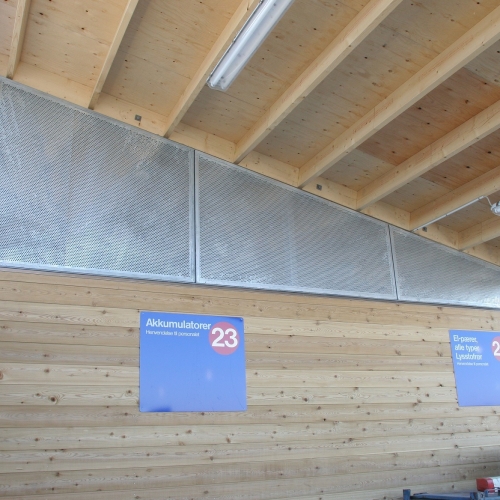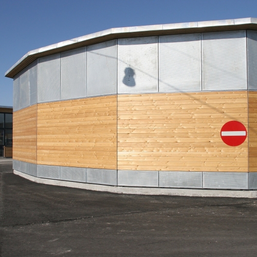 Diverse bygninger opført med galvaniserede stålspær, samt fasader af træ/husplade