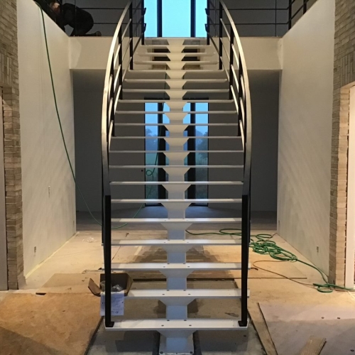 I tæt samarbejde med kunden, som selv har lavet designet, har vi udført denne unikke og moderne trappe, som vi kalder for Hvaltrappen.