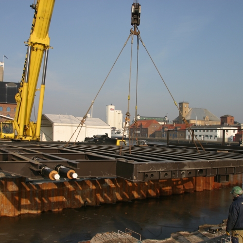 Fremstilling og monterin af broer til det nyrenoverede Odense Havn.