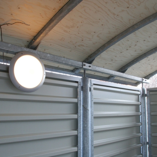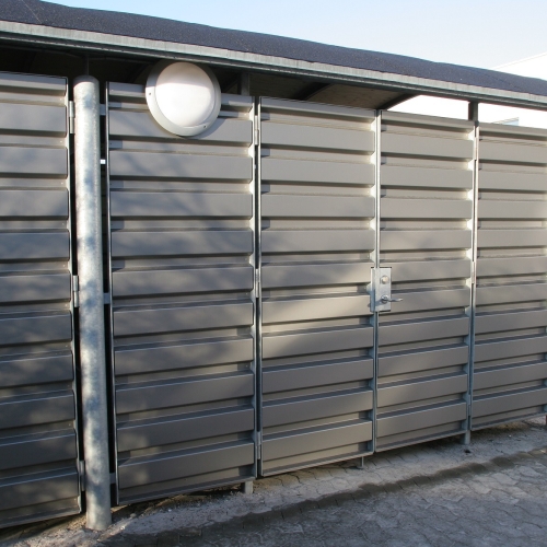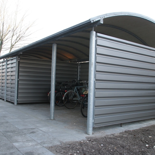 Totalentreprenør: Skanska A/S Cykelskur opført sepereret fra hovedbygning. Galvaniseret bærende stål, påmonteret facadeplader.