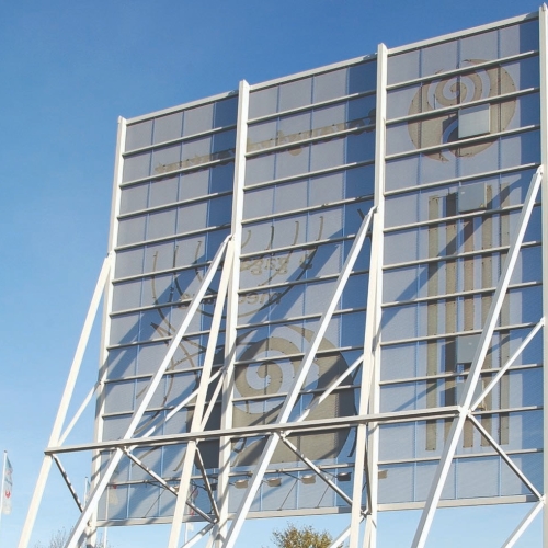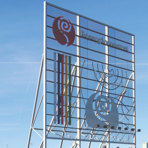 Reklameskilt i fladt design fremstillet og monteret ved Rosengårdscentret i Odense.