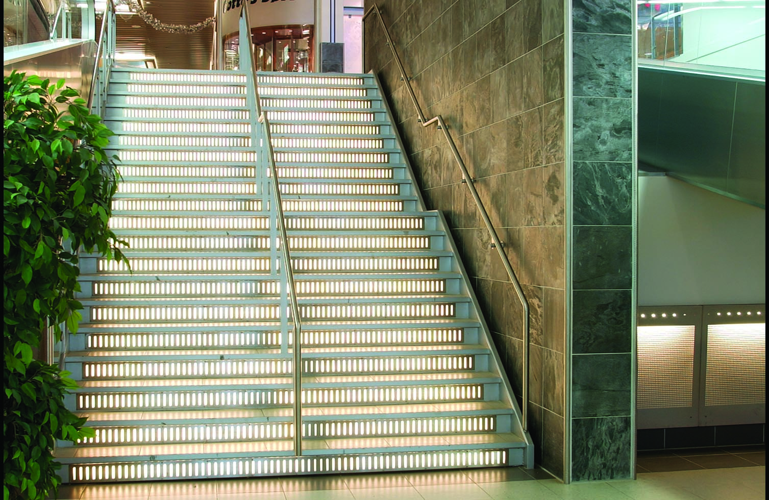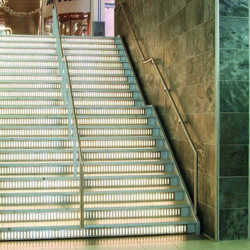 Trintype: Opbukket plade med lammeller for indbygget lys