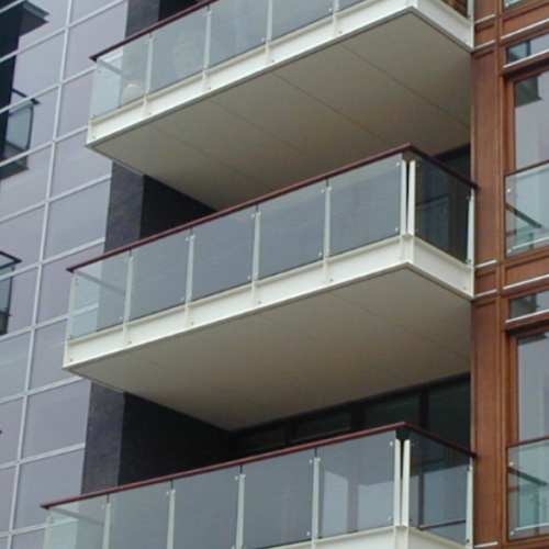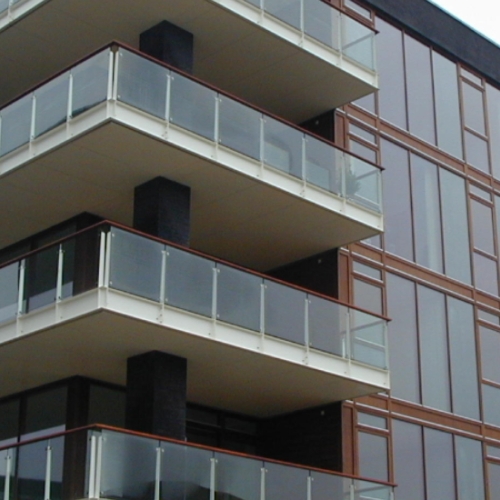 Gelænderudfyldning: 12 mm hærdet lamineret glas